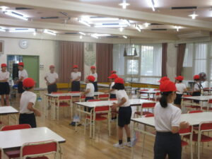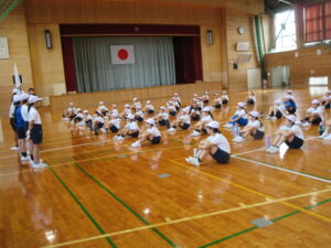 今日から運動会の練習が始まりました。今日は1時間目に、結団式を行いました。赤組はランチルームに、白組は体育室に集まり、応援リーダーが挨拶をした後、応援の練習をしました。応援リーダーの話を聞いて、一生懸命取り組んでいました。