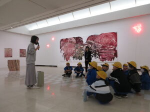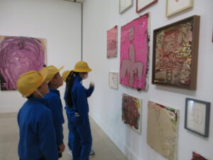 4学年は、2・3時間目に図画工作科の学習で黒部市美術館へ行きました。美術館の方から、美術館内のマナーを教えていただいた後、自由に作品を鑑賞しました。その後、3人グループになり、「これはどの絵の題名でしょうか?」ゲームに取り組みした。子供たちは、描かれているものや色をよく見てどの絵の題名かをグループの友達と相談しながら予想しました。