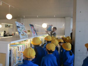 2学年は、校外学習で「あおーよ図書館」の見学をしました。図書の貸し出しや返却が自動で行えることや貸し出し中の本を予約できること等の説明を聞いた後、館内を見学しました。3階の児童図書や4階の一般図書、学習室等利用者が使う場所の見学をしました。その後、図書館についての質問をしたり職員の方による絵本の読み聞かせを聞いたりしました。最後に児童図書のコーナーで気に入った本を借りました。子供たちは「楽しかった。今度は家族と来たい」と話していました。