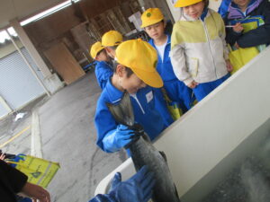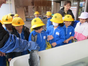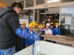 2学年は、2時間目に生活科の学習で干物専門店高岡屋に行きました。始めに、お店の中を案内していただいた後、店名の由来等、子供たちが気になることを質問しました。最後に、冷蔵庫の中を見せていただき、塩抜きされた鮭を特別に触らせてもらいました。見学させていただきありがとうございました。