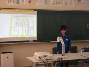 2学年は、4時間目に生活科の学習を行いました。校外学習で訪れたあおーよ図書館や干物専門店高岡屋について、見学して分かったことや質問した内容をまとめて新聞を作成しました。今日は、新聞にまとめた内容をもとに、発表会をしました。クイズやイラスト等、聞いている人が分かりやすく、楽しめるように工夫していました。