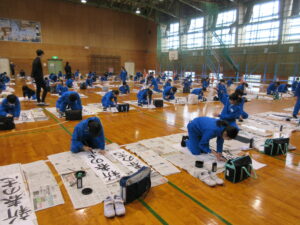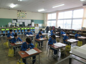 2時間目に、1・2学年は教室で、3・4・5・6学年は体育室で校内書き初め大会を行いました。練習してきた成果を発揮しようと、一画一画に気持ちを込めて書き上げていました。作品は、13日(火)から行う校内書き初め展でご覧いただけます。