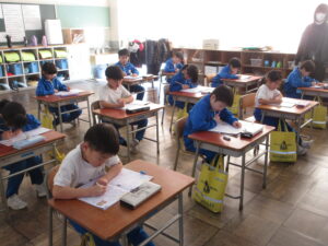 1学年授業(算数科) 2026年2月13日 1年 2月12日(火) 1学年は、4時間目に算数の学習を行いました。今日は、問題文を読み取り、どのような計算になるのかを図を使って考えました。最後に、それぞれが計算ドリルに取り組み、理解を深めました。