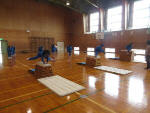 3学年授業(体育科) 2026年2月24日 3年 2月24日(火) 3学年は、4時間目に体育科で跳び箱の学習をしました。3段~5段の高さの跳び箱から自分が跳べるものを選び、跳び方の練習をしました。友達の応援を受けながら、何度も挑戦していました。