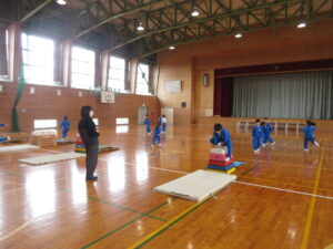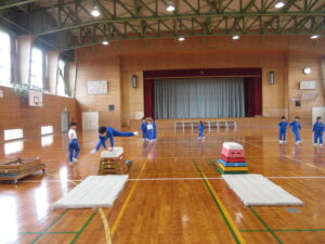 1学年授業(体育科) 2026年3月2日 1年 2月27日(金) 1学年は、3時間目の体育で跳び箱の学習に取り組みました。3段・4段・5段の中から自分が挑戦したい段数を選びました。跳ぶタイミングや姿勢を工夫し、何度も意欲的に挑戦していました。